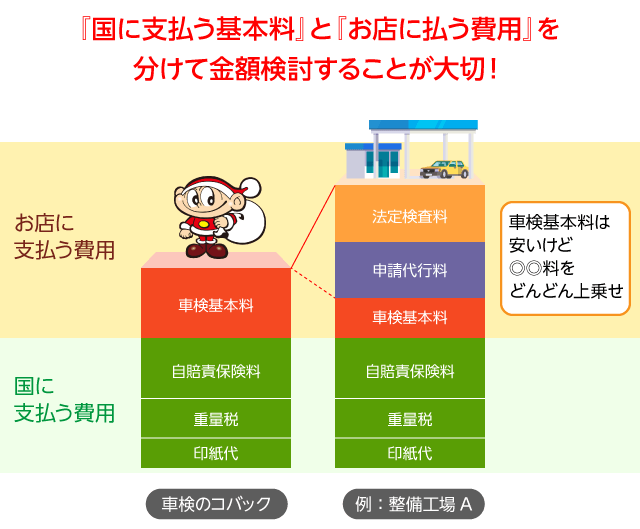 車検料金を比較する時は『国に支払う法定費用』と『お店に支払う費用』を分けて金額検討することをおススメします。